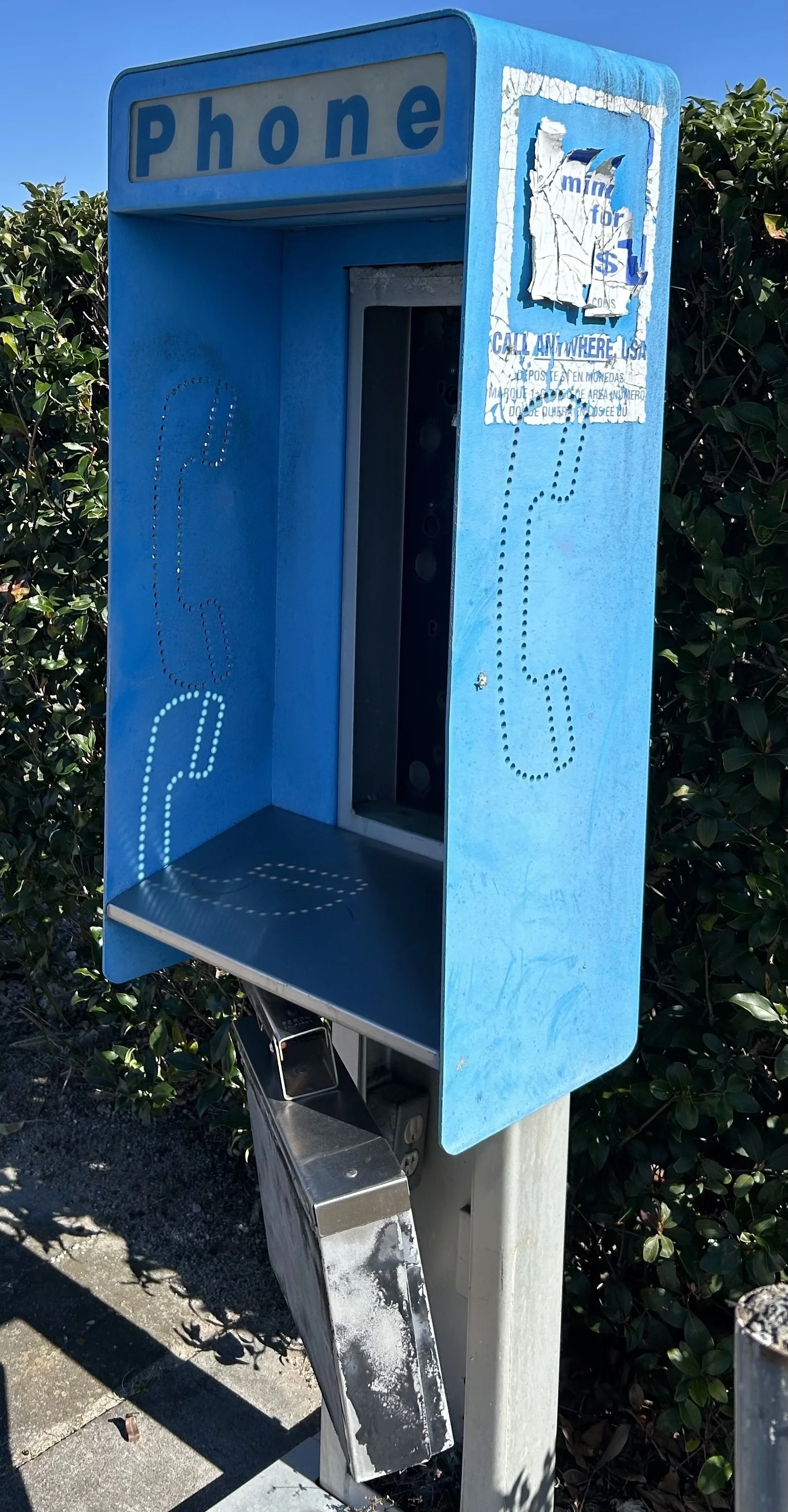 Twins ain’t just a buddy comedy. Dual payphones in Savannah, Georgia. Notice the phone book cases are still intact. These dinosaurs still roam the earth.